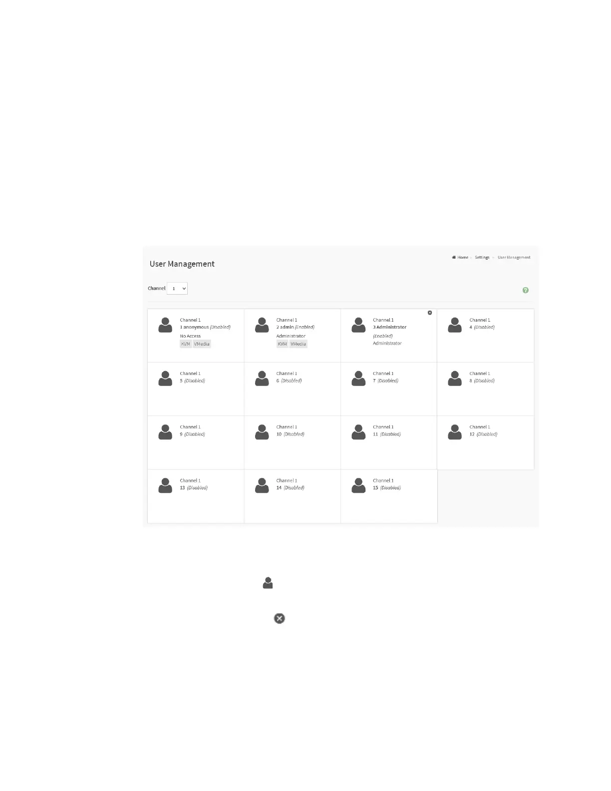 list of user slots for the BMC, and allow users to add a new user and modify or