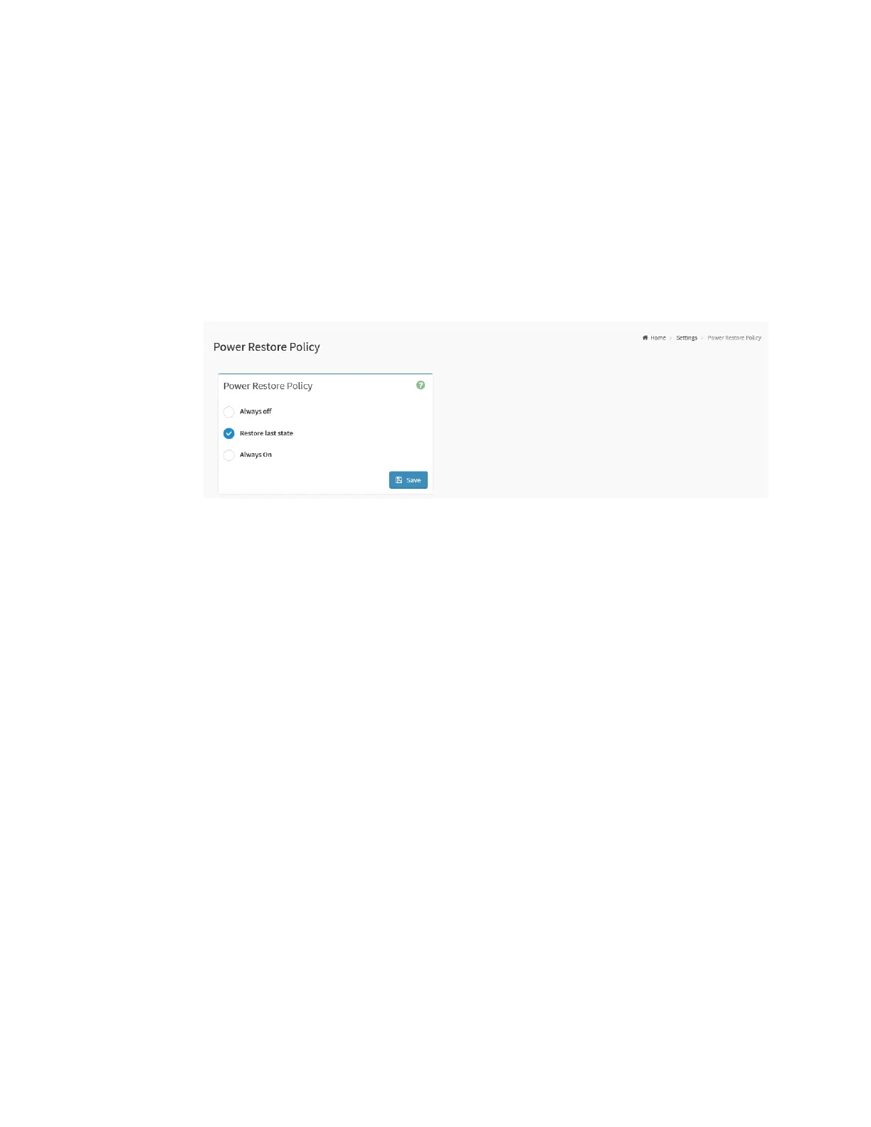 To view the Power Restore Policy page, click the Settings -> Power Restore