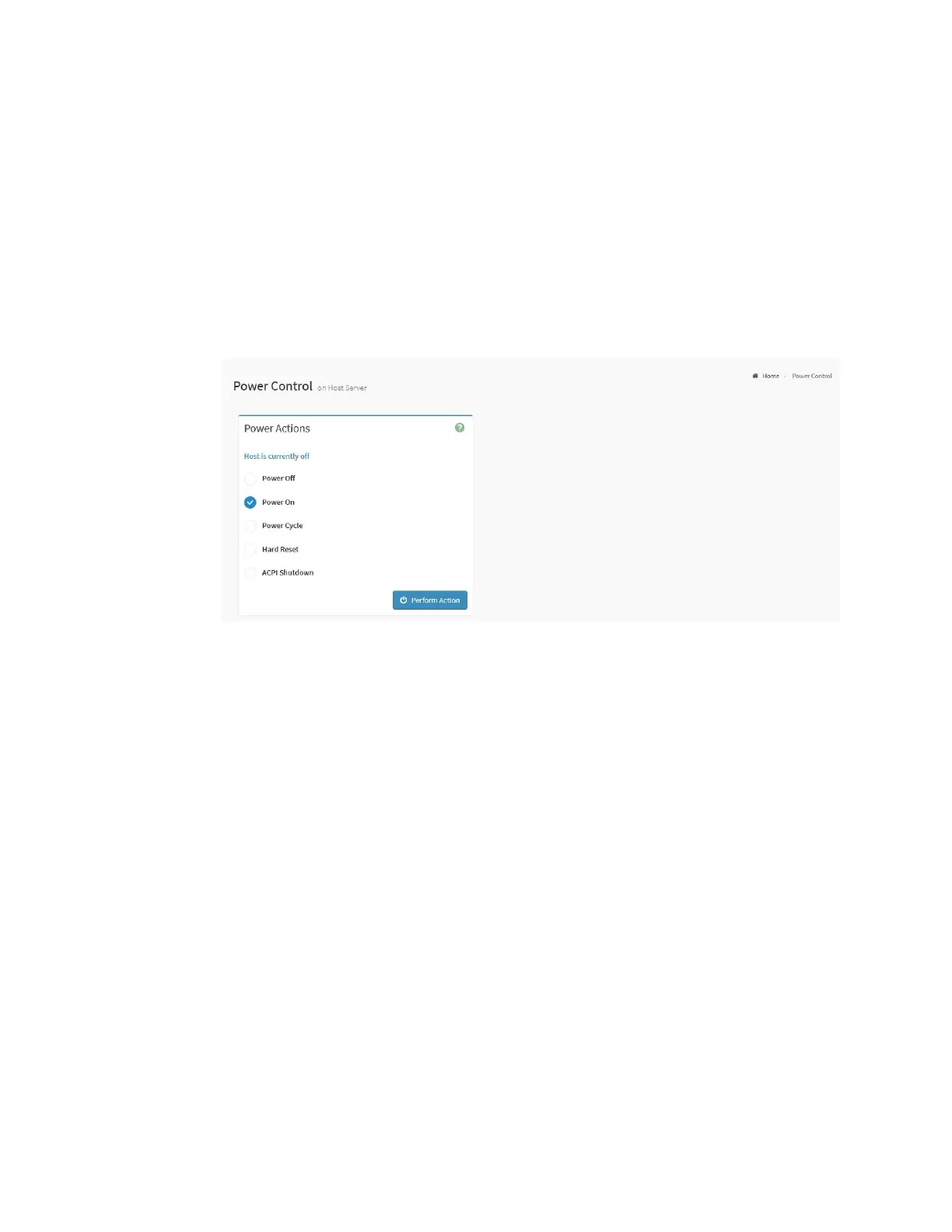 To view the Power Control page, click the Power Control tab from the menu