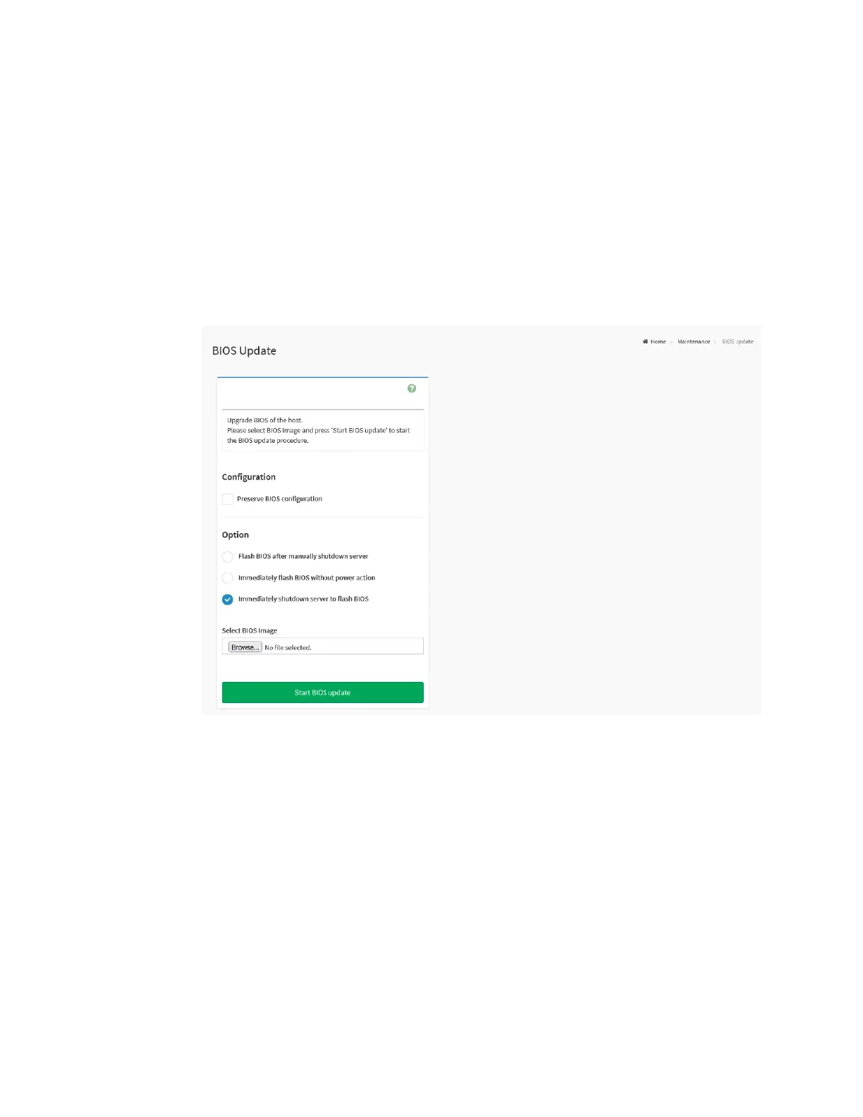 To view the BIOS Update page, click the Maintenance -> BIOS Update tab