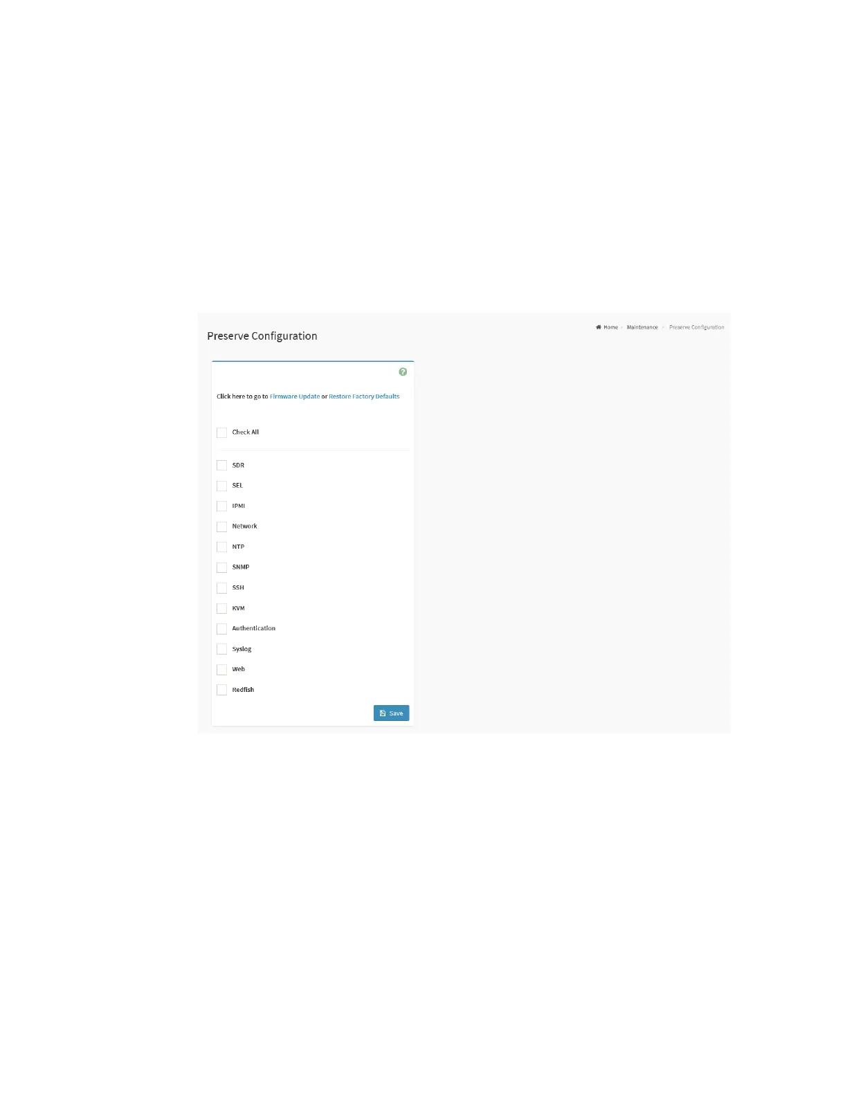 To view the Preserve Configuration page, click the Maintenance -> Preserve