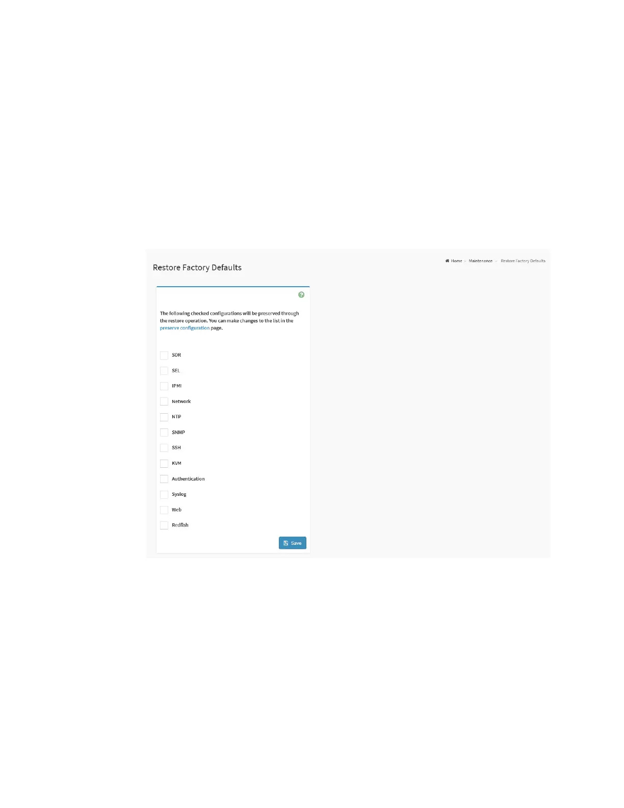 To view the Restore Factory Defaults page, click the Maintenance ->