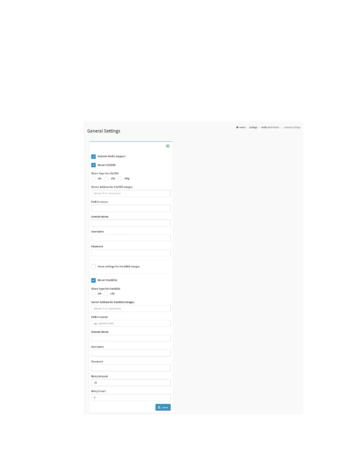 To view the General Settings page, click the Settings -> Media Redirection
