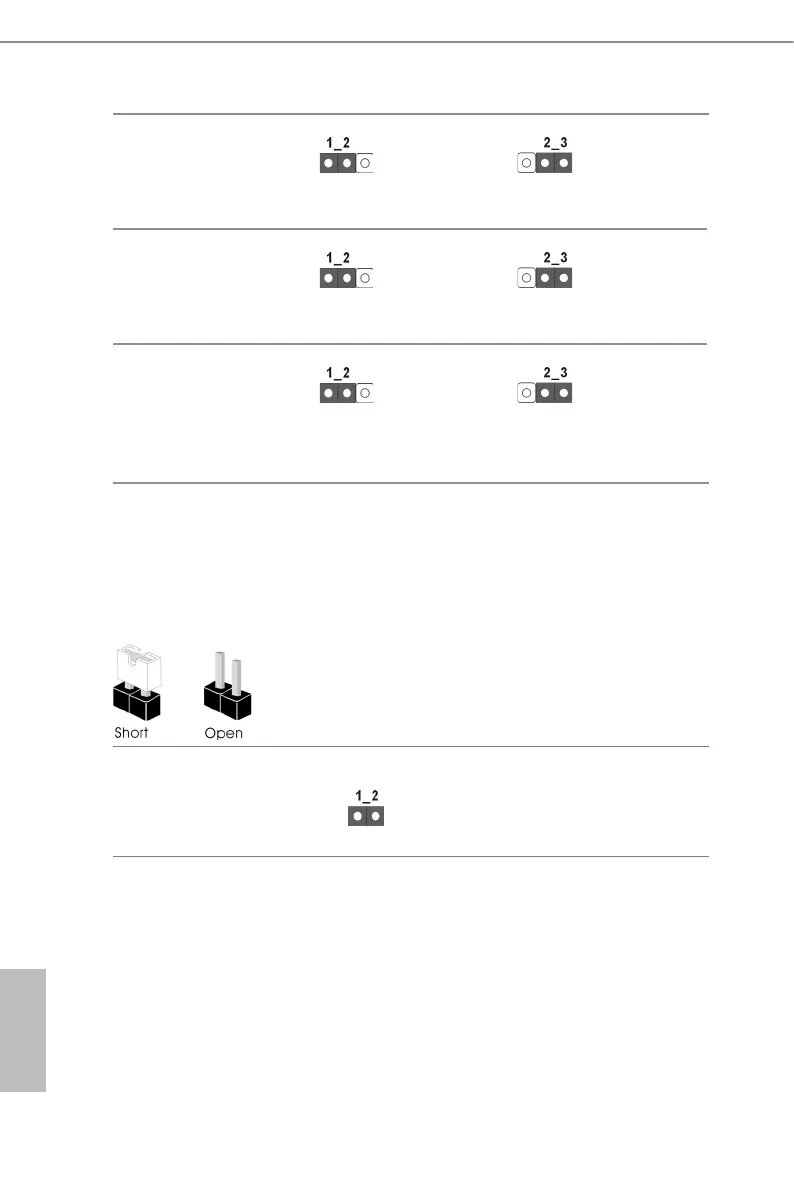 the pins, the jumper is “Short”. If no jumper cap is placed on the pins, the jumper is