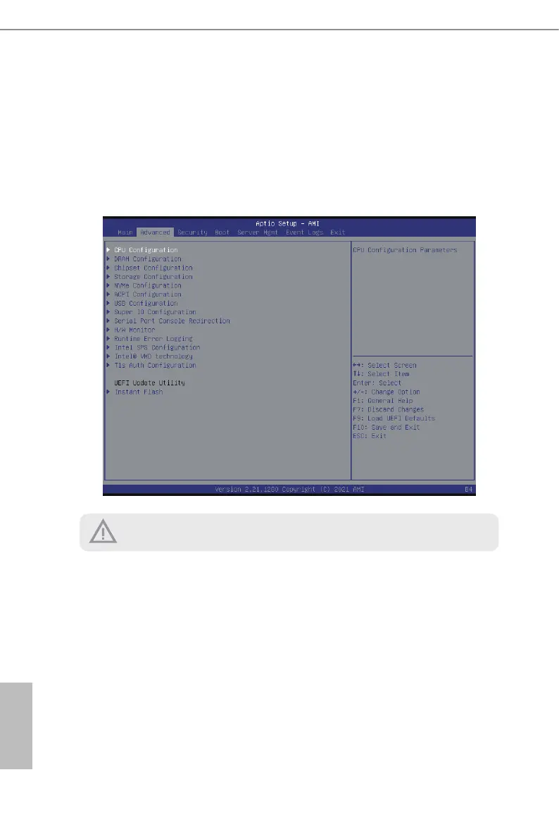 In this section, you may set the congurations for the following items: CPU Conguration,