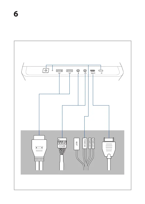der vorderen E/A-Anschlüsse | Collegate i connettori di I/O frontali | フロント I/Oコネクターを取り付 ける | 전면 I/O
