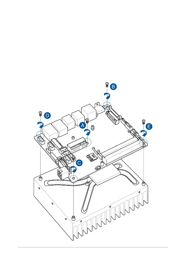 2. Place the motherboard over the heatsink so that the five (5) screw
