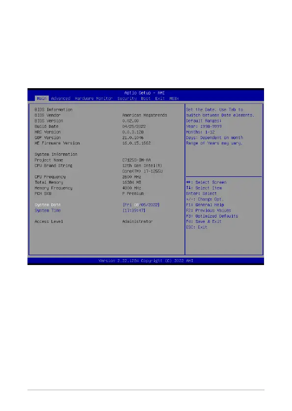 When you enter the BIOS Setup program, the Main menu screen appears.