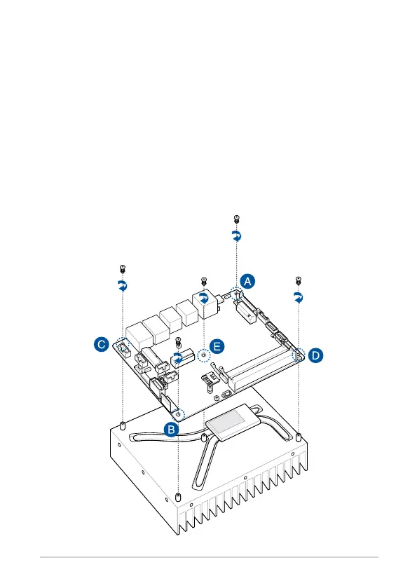 4. Secure the motherboard to the heatsink using the ve (5) spring screws