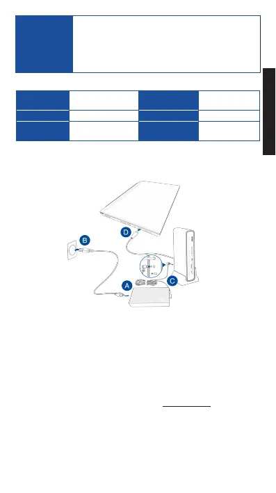 • 僅可使用隨附的電源充電器為 ASUS USB-C 三投影擴展塢充電以及將
