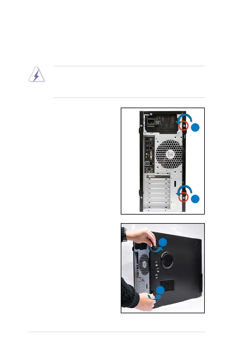 在移除側邊蓋板之前,請先移除連接在機殼上的電源線。