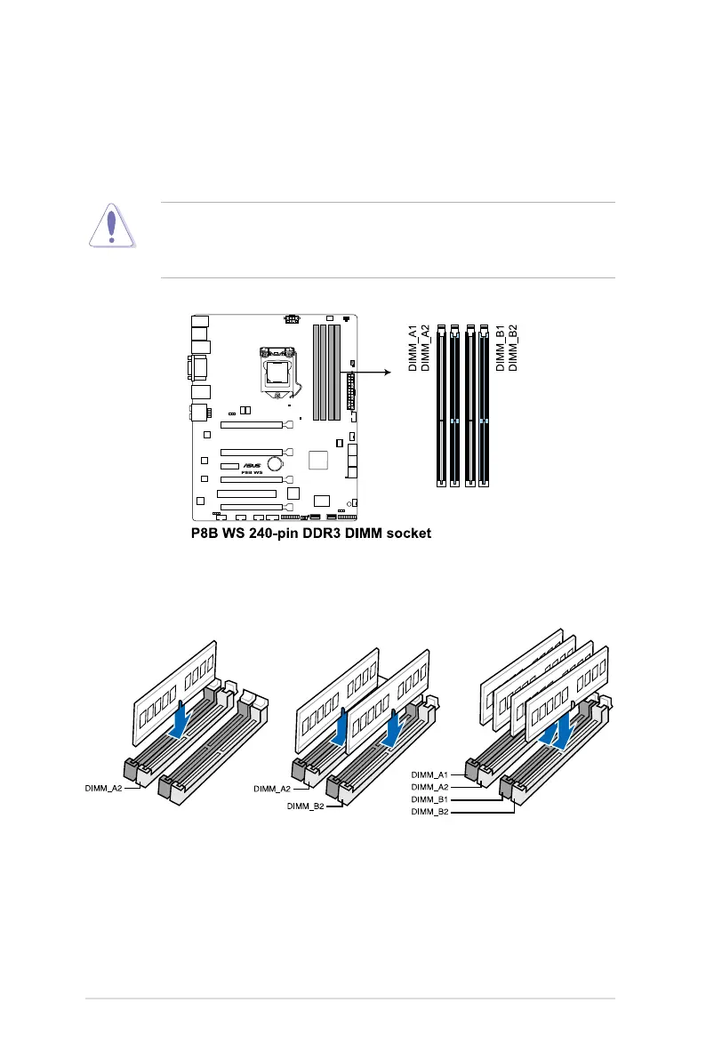 本主機板配置有 4 DDR3(Double Data Rate 3)記憶體模組插槽。下圖