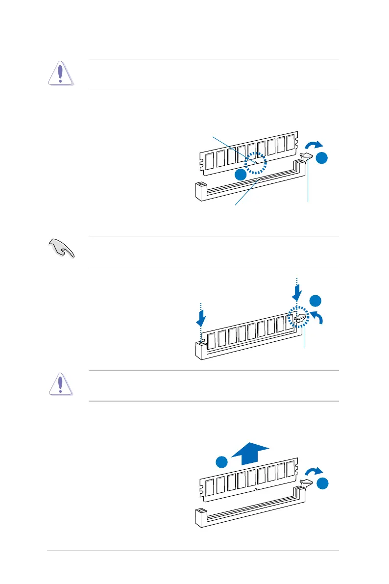 請將記憶體模組缺口對準插槽的凸起點並垂直插入,以免造成記憶體模