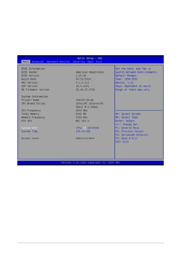 When you enter the BIOS Setup program, the Main menu screen appears.