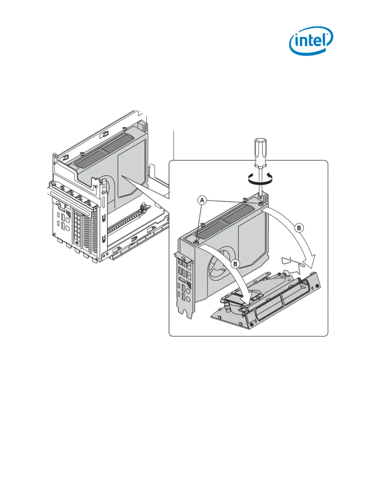 6. Unscrew the top screws on the Intel® NUC Compute Element (A) and open the door down (B)