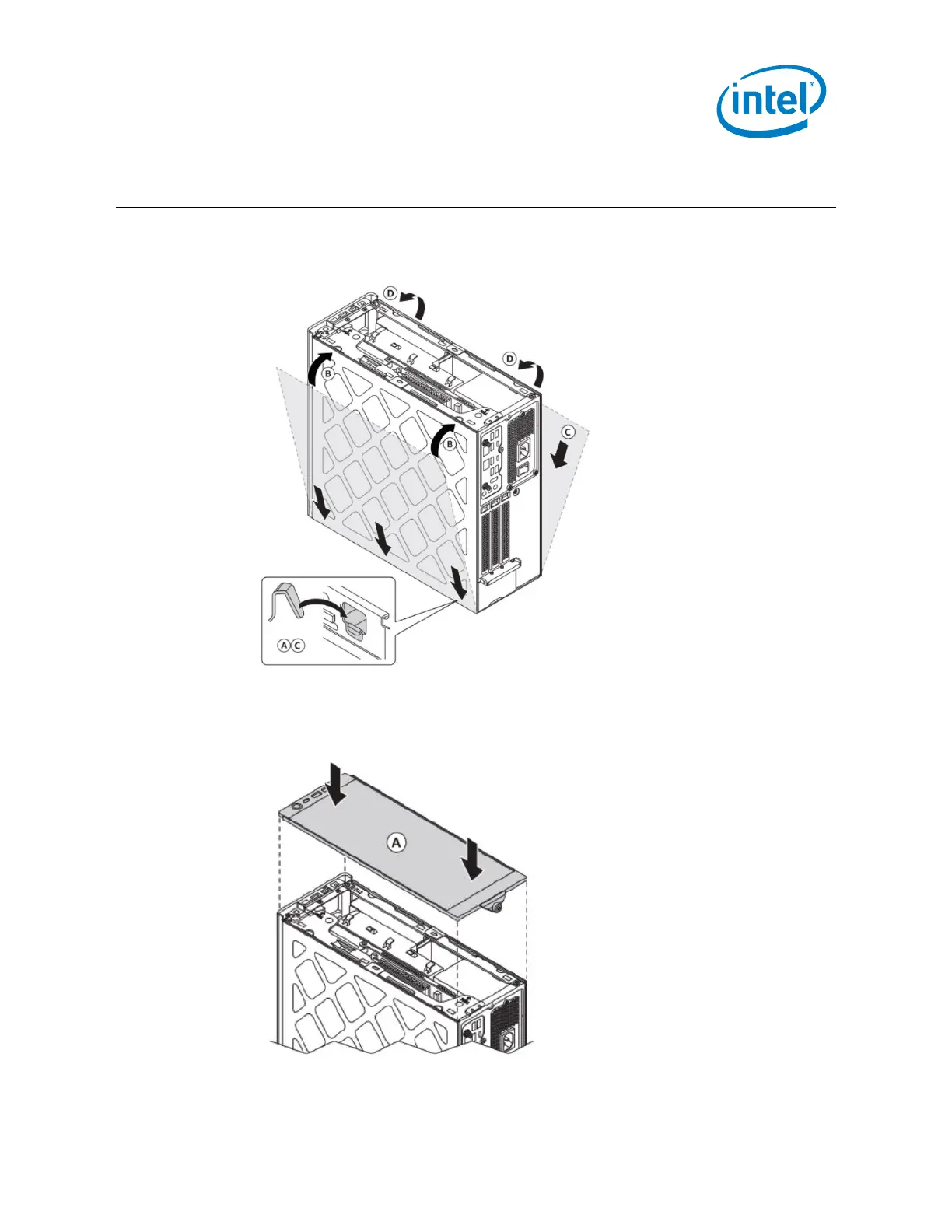 2. Push the side cover towards the chassis to engage the top latches (B) and (D)