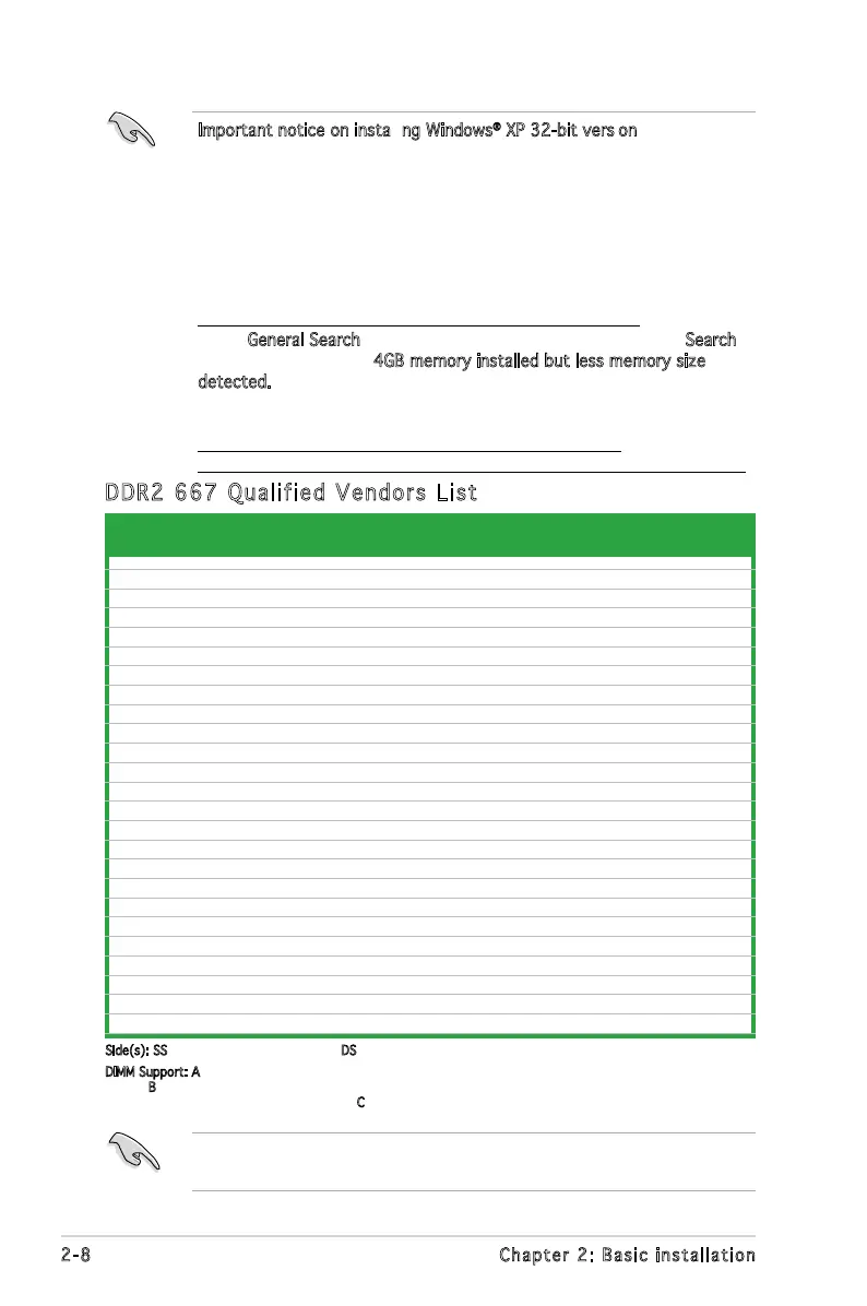 Visit the ASUS website (www.asus.com) for the latest memory Qualied