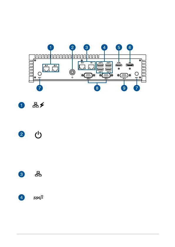 The 8-pin RJ-45 LAN port supports a standard Ethernet