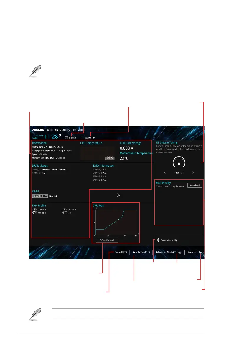 By default, the EZ Mode screen appears when you enter the BIOS setup program. The EZ