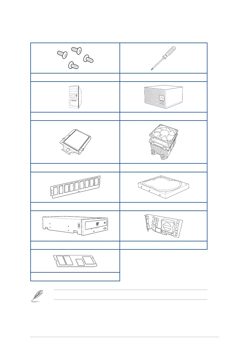 The tools and components in the table above are not included in the motherboard package.