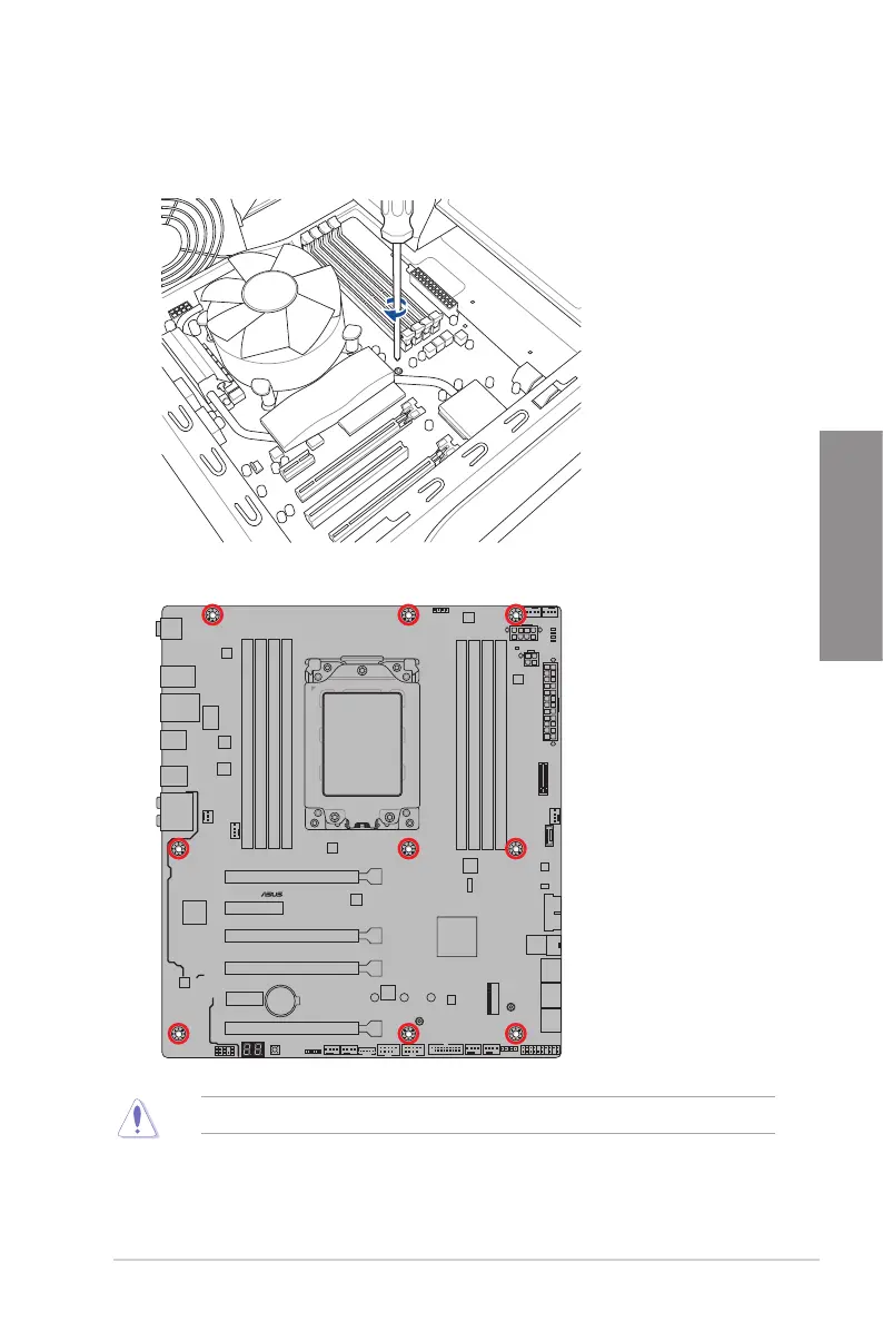 DO NOT overtighten the screws! Doing so can damage the motherboard.