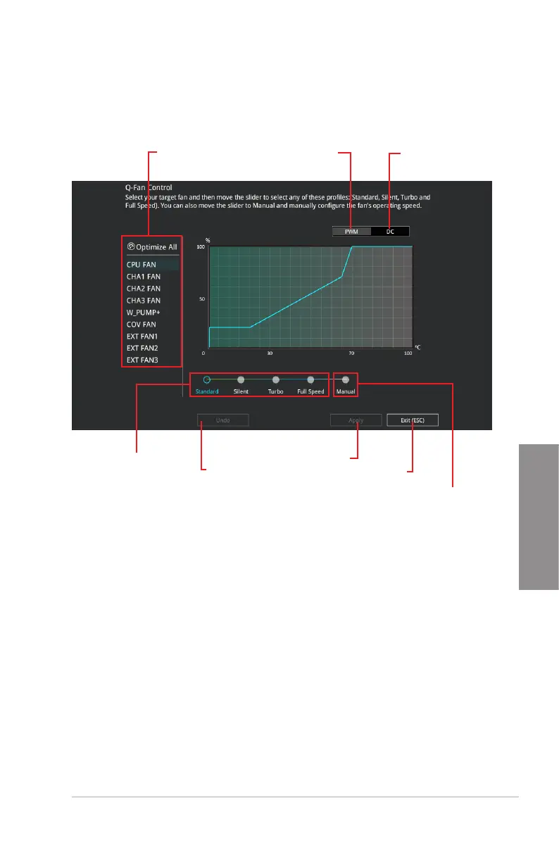 The QFan Control allows you to set a fan prole or manually congure the operating speed of