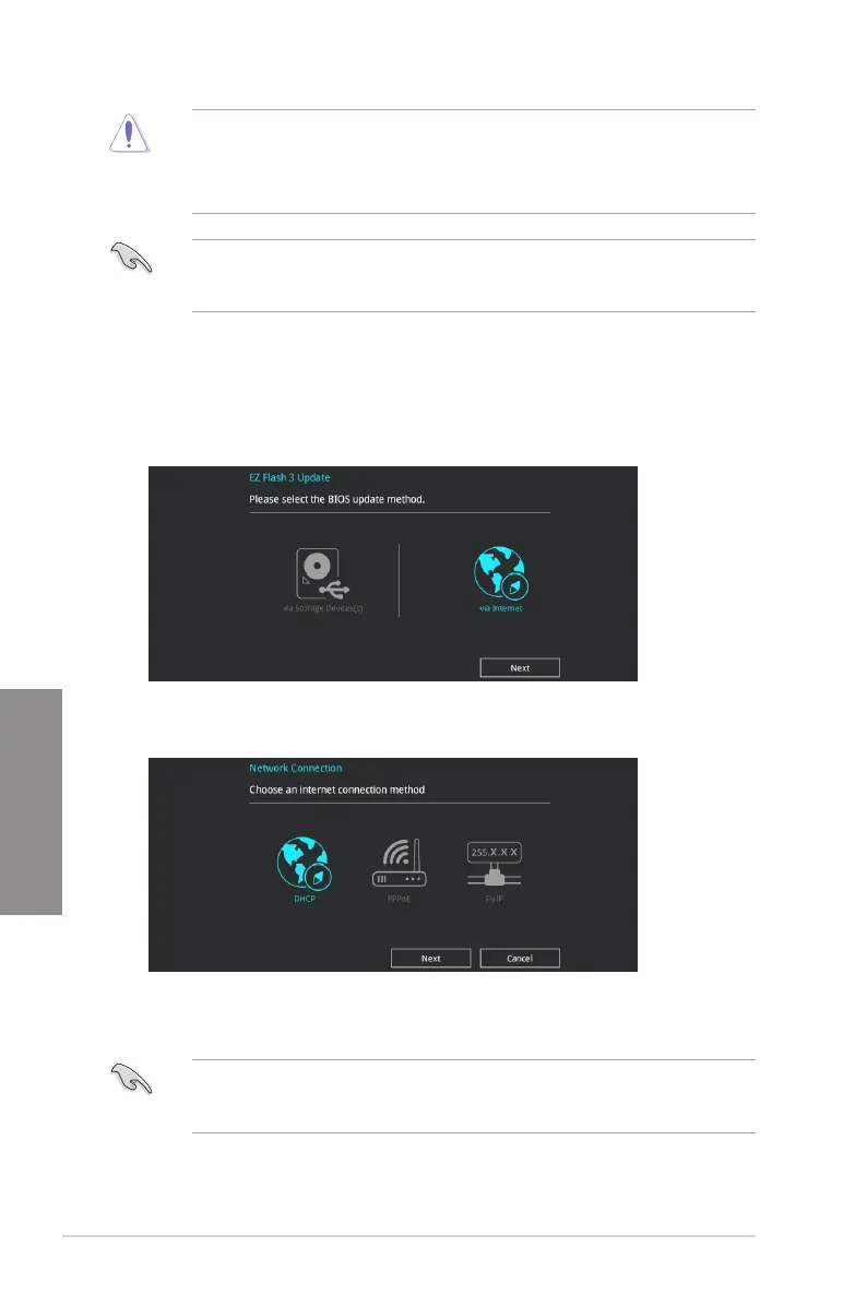 3. Press the Left/Right arrow keys to select an Internet connection method, and then