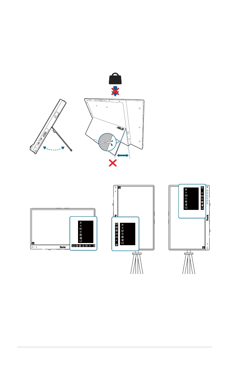 • Hold the stand to prevent the monitor from falling when you change its angle.