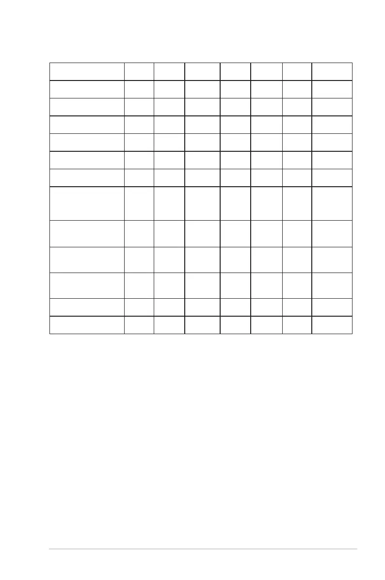 Below table shows the default congurations for each Preset mode: