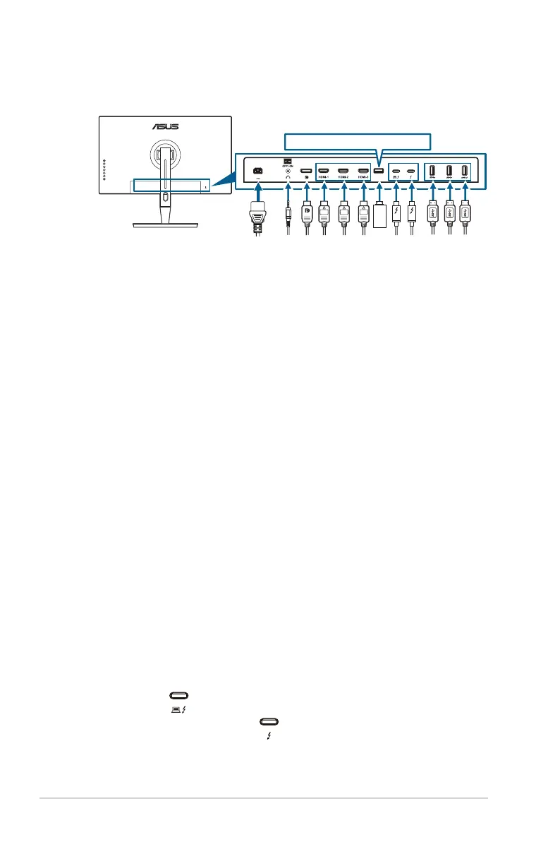the monitor's Thunderbolt port as upstream, and the other side (Type-A