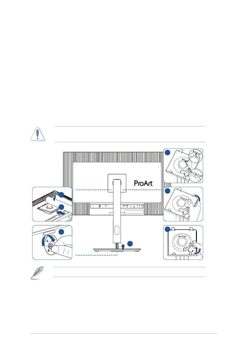 4. Have the front of the monitor face down on a table, slide the tabs on the arm