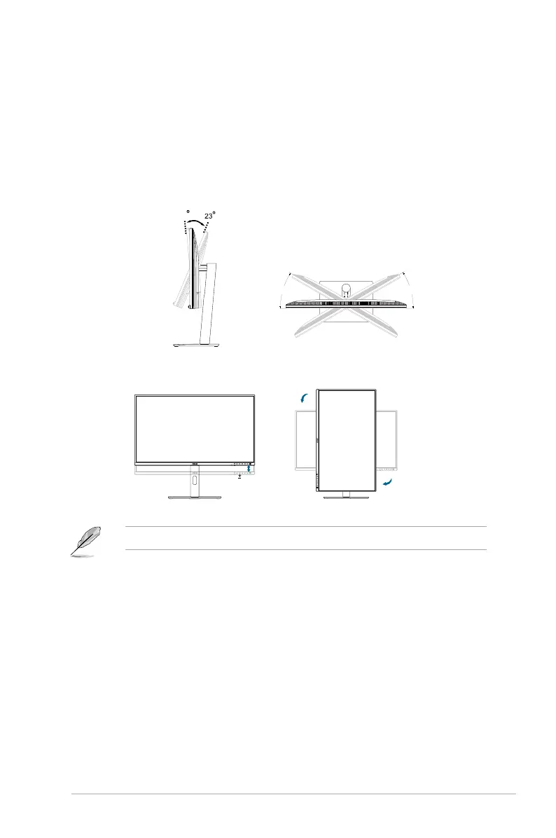 • You can adjust the monitor’s angle from +23˚ to -5˚, +/- 30˚ swivel adjustment