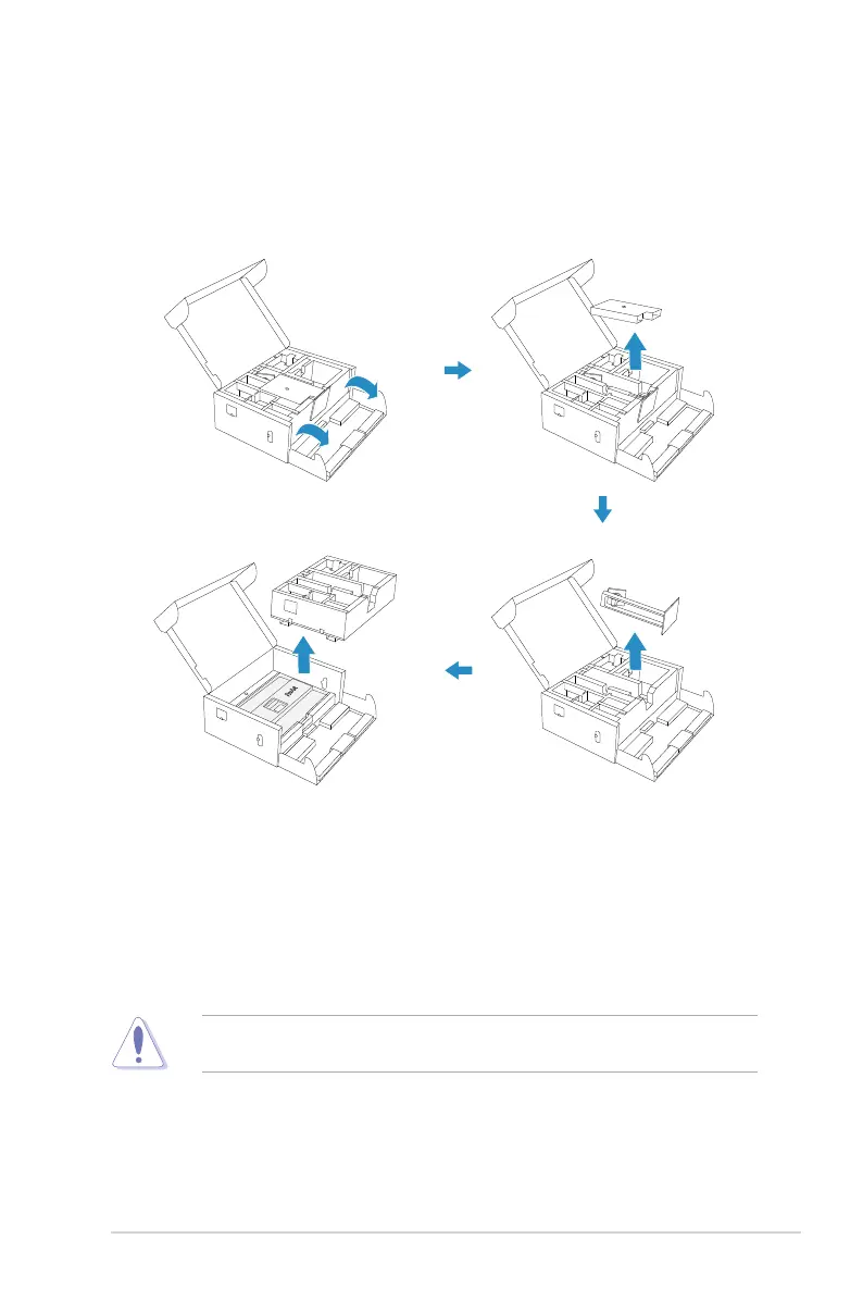 1. Na het openen van de doos verwijdert u de papieren kussens en standaard