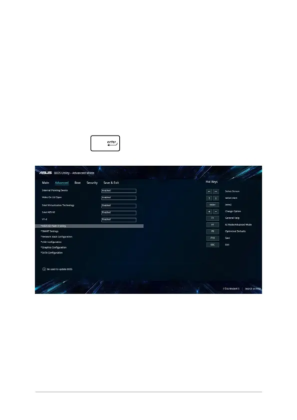5. From the BIOS menu, select Advanced > ASUS EZ Flash 3 Utility,