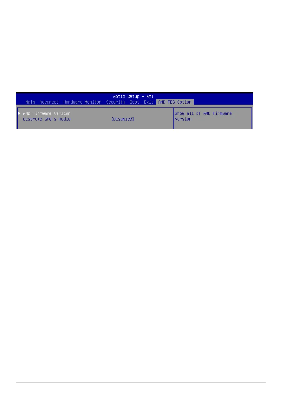 The AMD PBS Option menu items allow you to configure AMD specific features.