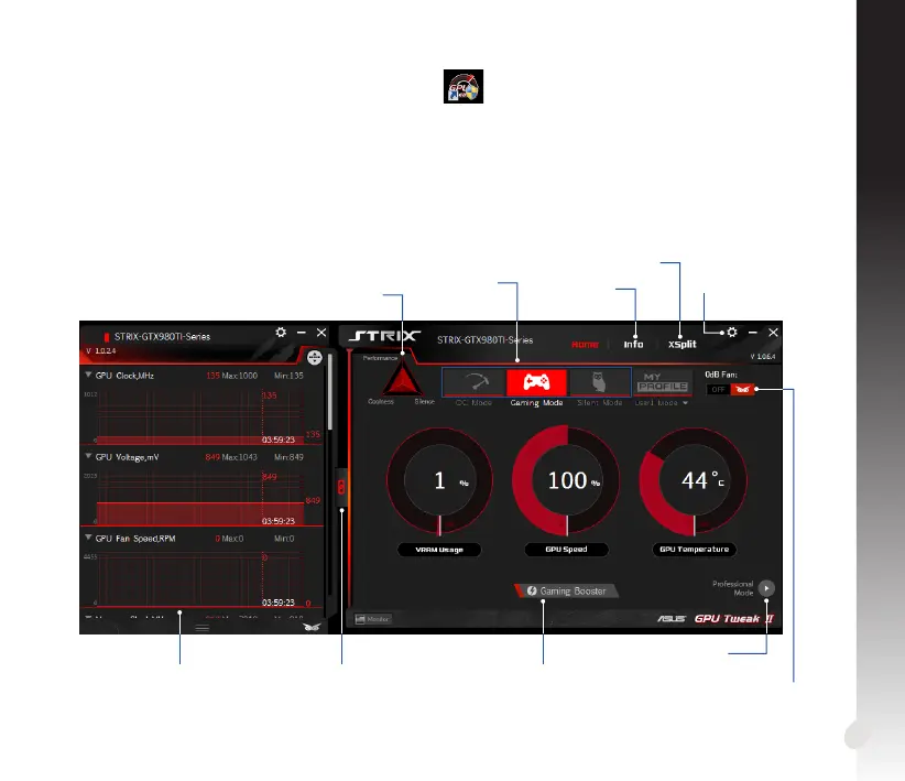 • KliknijStart > All Programs (Wszystkie programy) > ASUS > GPU Tweak II,abyuruchomićprogram.