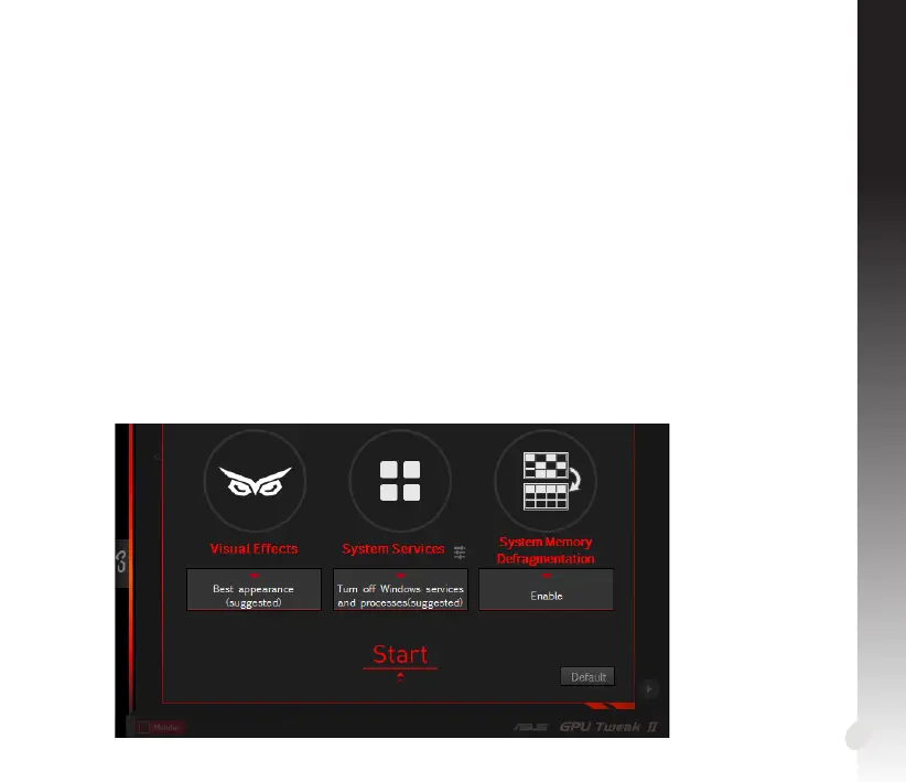 • Efectos visuales: Permite desactivar los efectos visuales de Windows® para intensicar el rendimiento