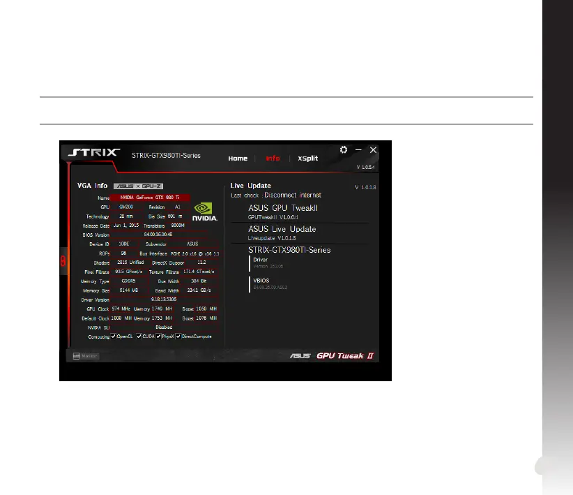 L'écranInformationsvousfournitdesinformationsetdesmisesàjourendirectrelativesàvotrecarteVGA