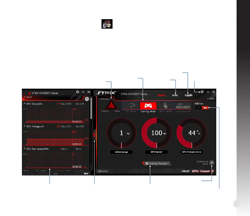 • Spusťte program kliknutím na Start > All Programs (Všechny programy) > ASUS > GPU Tweak II.