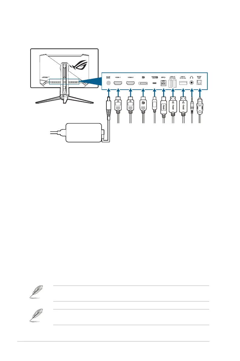 • De HDMI/DisplayPort/USB Type-C-kabel aansluiten: