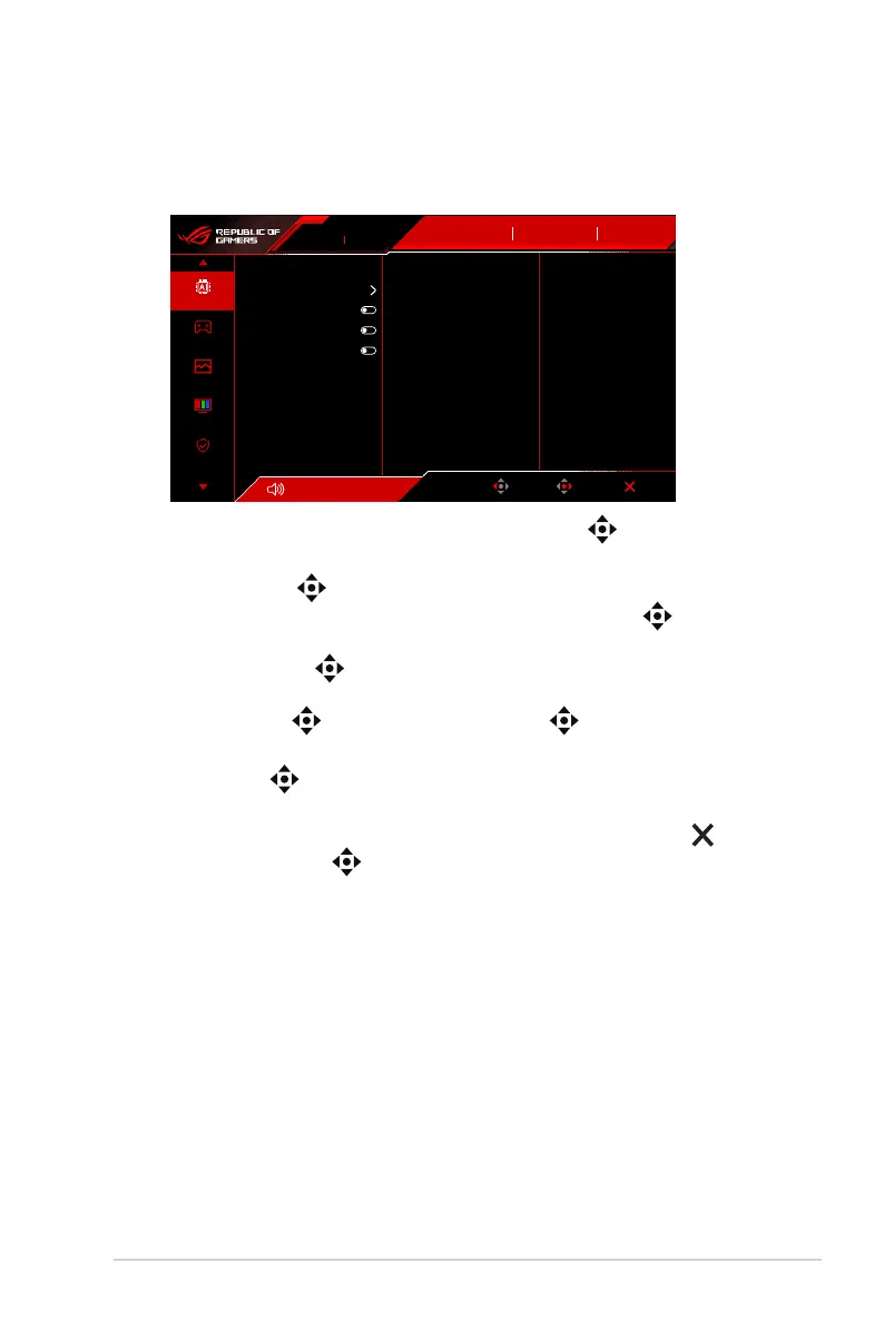 1. Zodra de monitor is ingeschakeld, drukt u op de knop (5-weg) om het