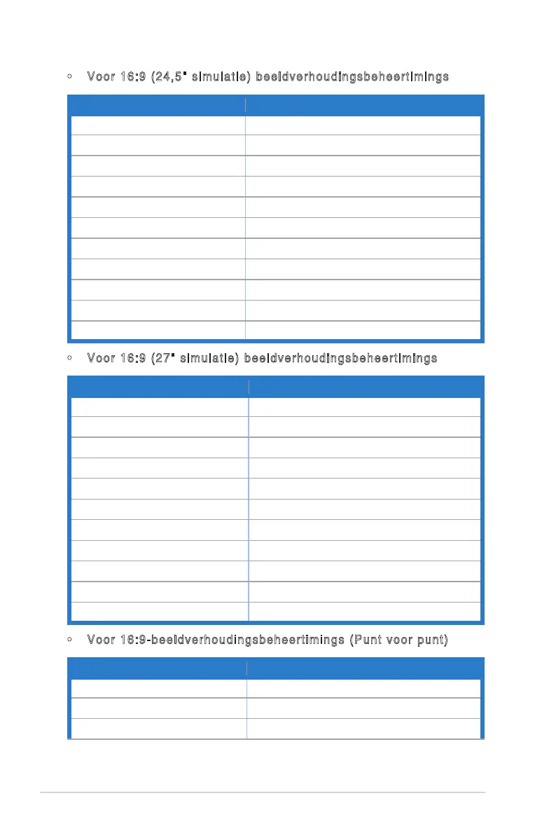 • Voor 16:9 (24,5" simulatie) beeldverhoudingsbeheertimings