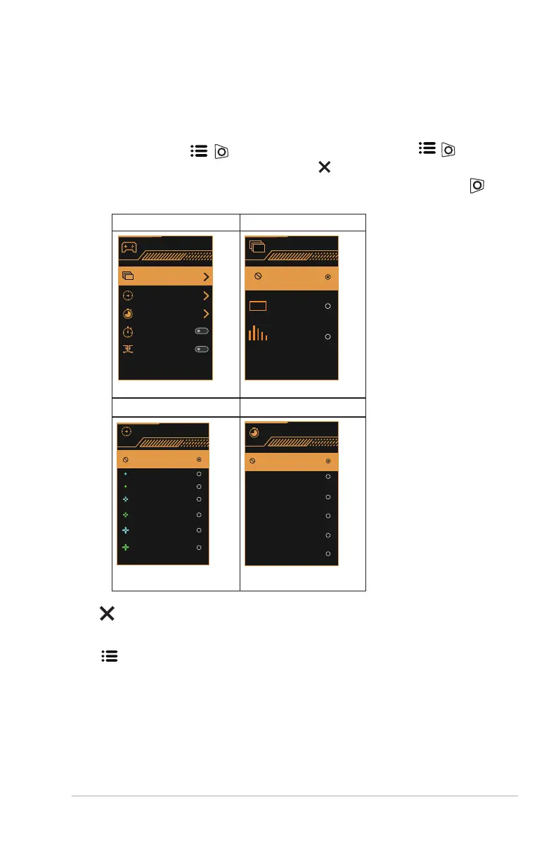 • Turn on the OSD menu. Enact the selected OSD menu item.