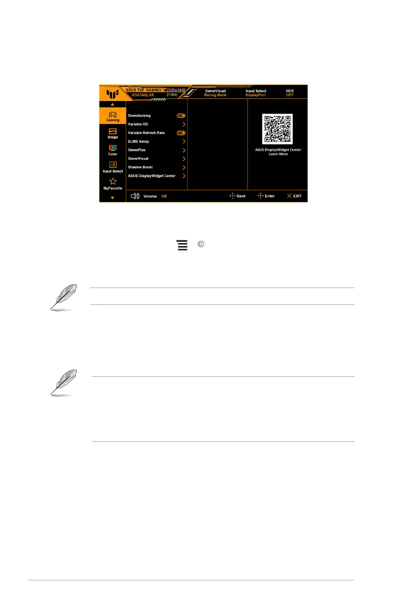 • Overclocking: Allows you to select a maximum refresh rate of 210Hz (Only