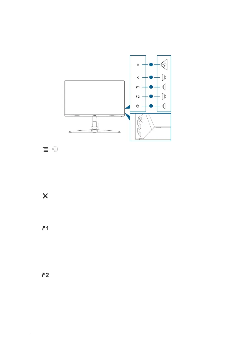 • Turns on the OSD menu. Enacts the selected OSD menu item.