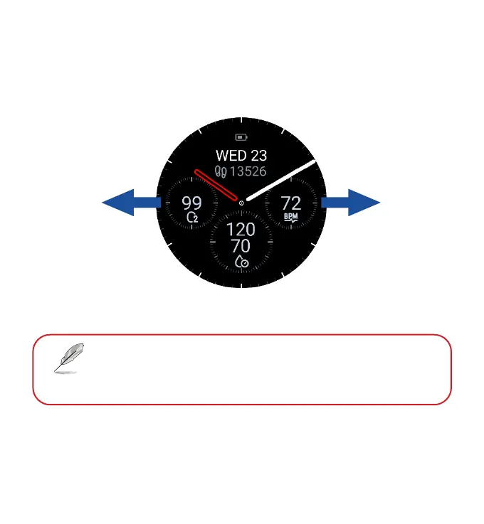 Swipe left or right to scroll through the ASUS VivoWatch 6 features.