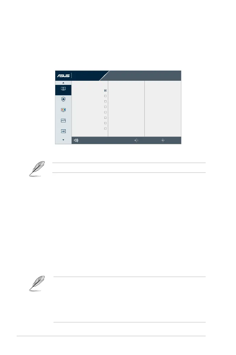 • In de sRGB-modus zijn de volgende functies niet door de gebruiker