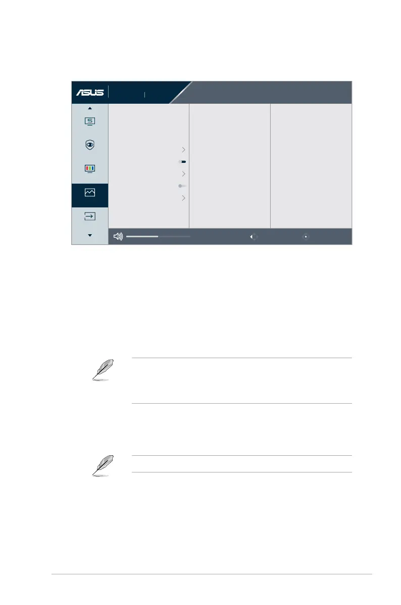 • ASCR: Turns on/off the ASCR (ASUS Smart Contrast Ratio) function.