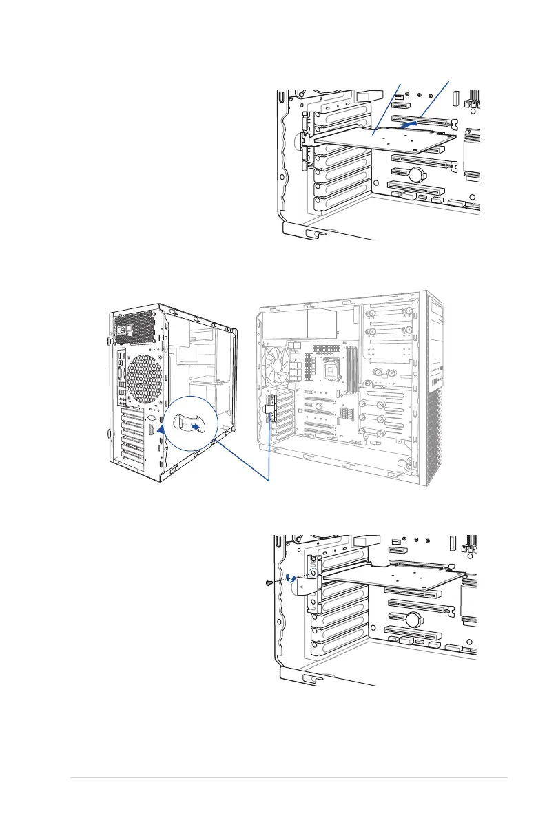 5. 將 PCI-E 擋板固定扣朝內壓下聽到「喀」的聲響,以確實固定擴展卡。