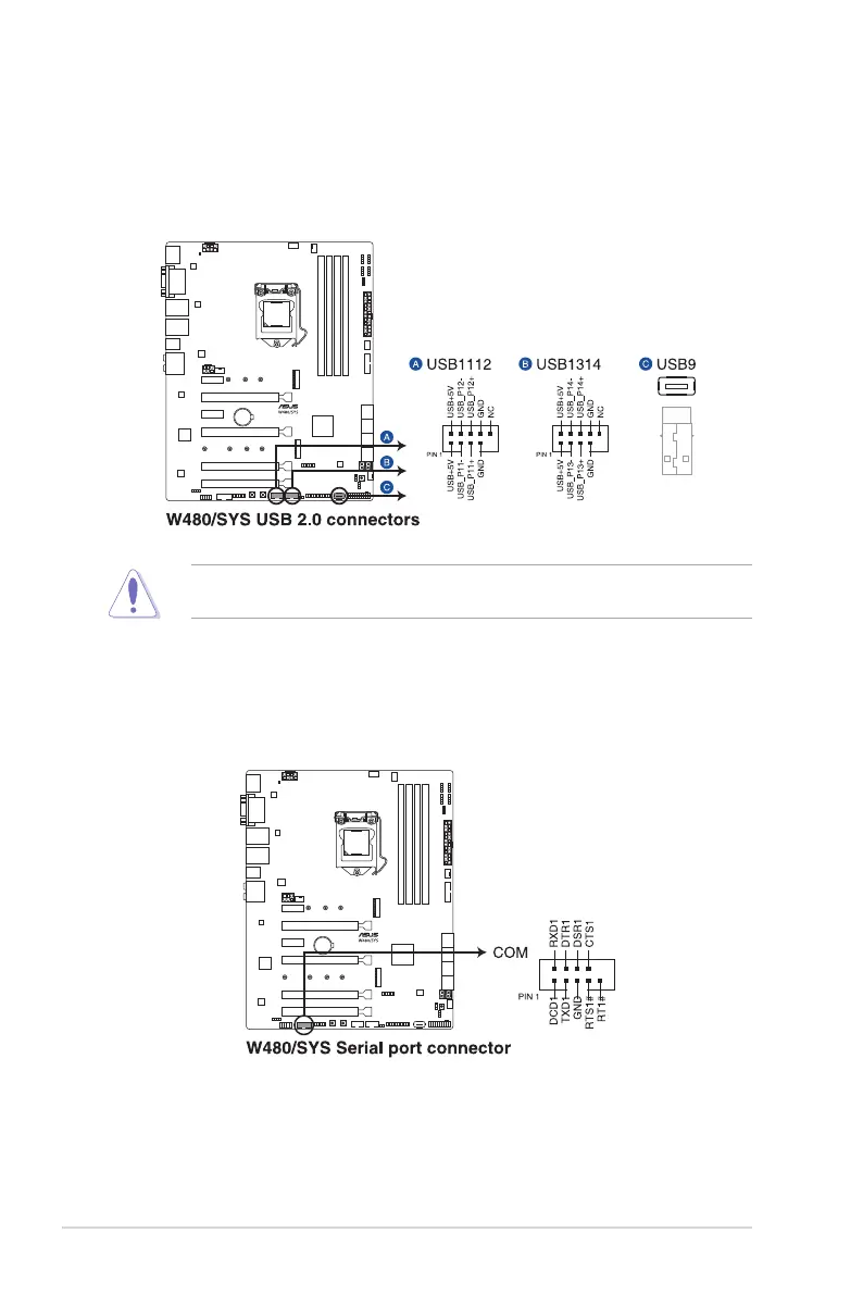 5. USB 2.0 連接插槽(10-1 pin USB1112, USB1314; 4-pin Type-A USB9)